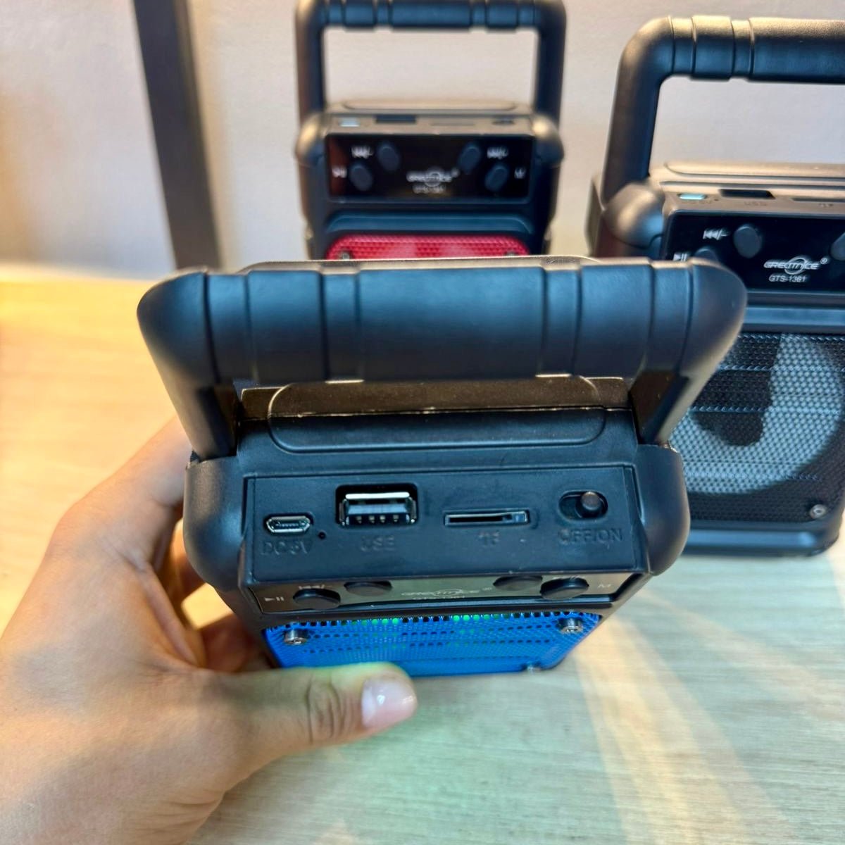 ¡Lleva tu música a otro nivel! El GTS-1361 es el parlante compacto perfecto para ambientar cualquier espacio con buen sonido, batería duradera y luces LED que le dan el toque 🔥 a tus reuniones, entrenamientos, paseos o tu negocio.