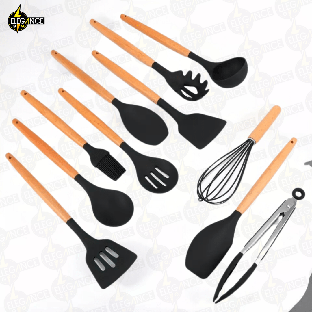 Utensilios de Cocina Silicona y Madera (12 Piezas)